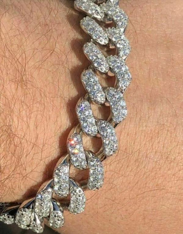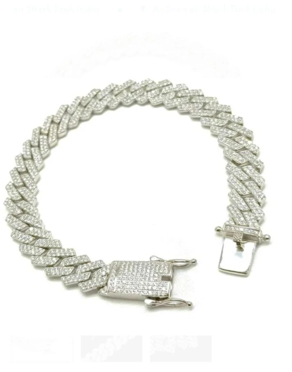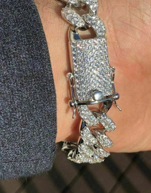 Men American Diamond Silver Pleated Round Bracelet