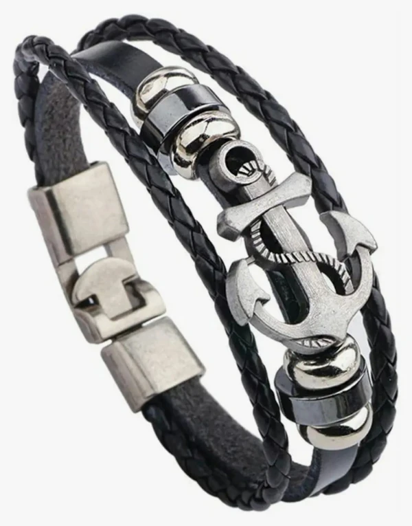 Bangle Cuff Black Multi Strands Leather Wrap Adjustable Bracelet