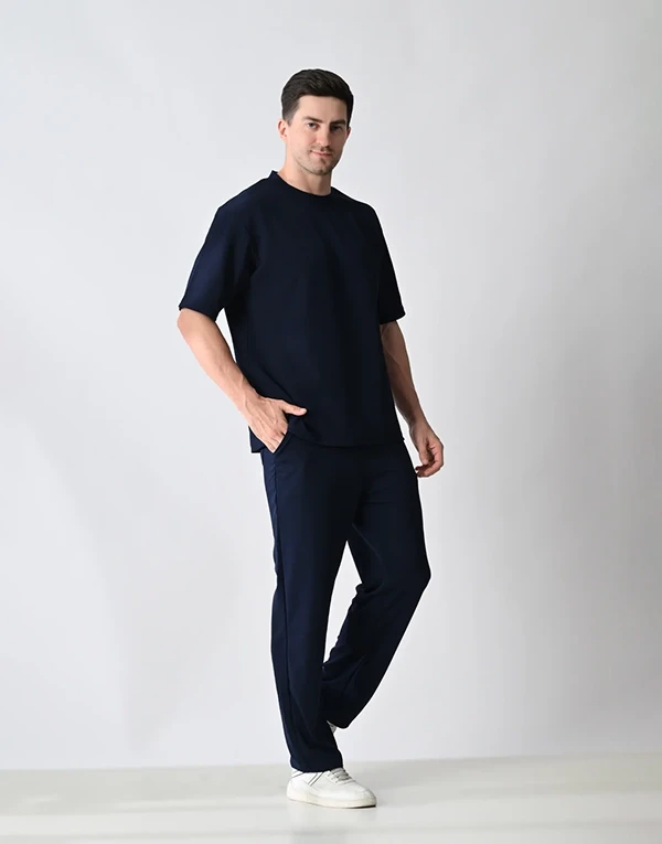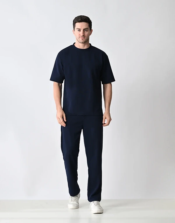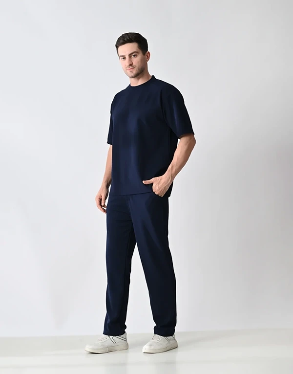 Crafted from lightweight, breathable polyester fabric, this co-ord set is designed for ultimate comfort and style. The oversized T-shirt offers a relaxed, easy-going fit, perfect for a laid-back vibe. The matching trousers feature a relaxed fit with thoughtful functionality — two practical side pockets and one clean back pocket on the right hip. Whether you're lounging, traveling, or stepping out casually, this set blends minimalism with comfort for effortless everyday wear.