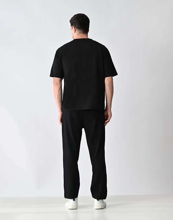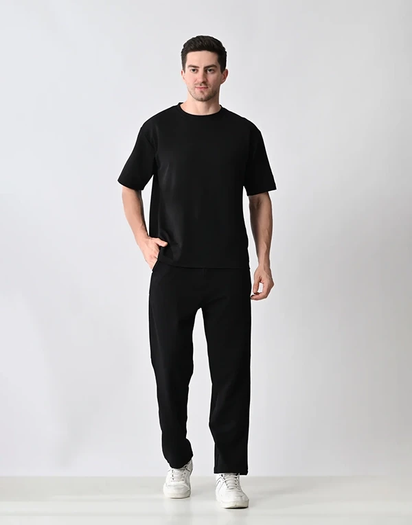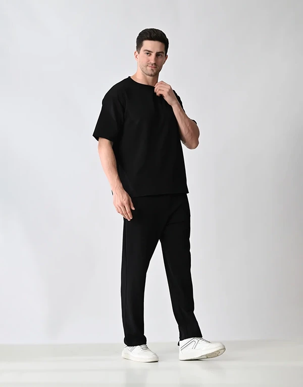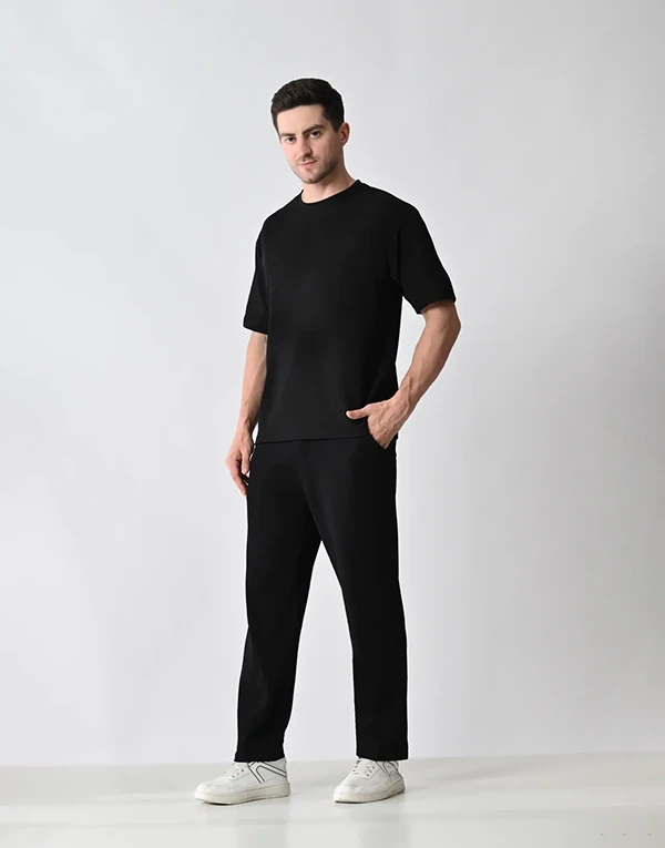 Crafted from lightweight, breathable polyester fabric, this co-ord set is designed for ultimate comfort and style. The oversized T-shirt offers a relaxed, easy-going fit, perfect for a laid-back vibe. The matching trousers feature a relaxed fit with thoughtful functionality — two practical side pockets and one clean back pocket on the right hip. Whether you're lounging, traveling, or stepping out casually, this set blends minimalism with comfort for effortless everyday wear.