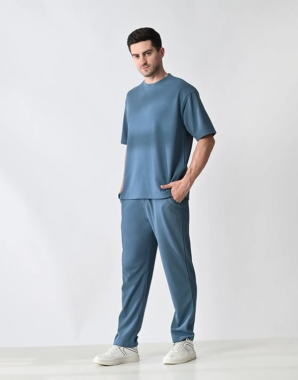 Crafted from lightweight, breathable polyester fabric, this co-ord set is designed for ultimate comfort and style. The oversized T-shirt offers a relaxed, easy-going fit, perfect for a laid-back vibe. The matching trousers feature a relaxed fit with thoughtful functionality — two practical side pockets and one clean back pocket on the right hip. Whether you're lounging, traveling, or stepping out casually, this set blends minimalism with comfort for effortless everyday wear.